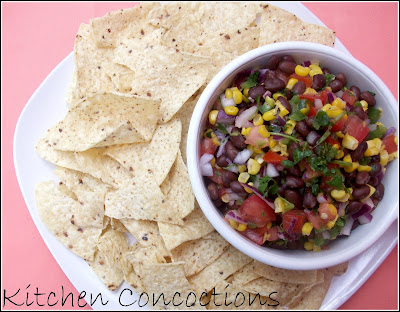 Roasted Corn and Black Bean Salsa can be served with tortilla chips for the perfect summer snack,
